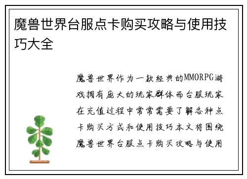魔兽世界台服点卡购买攻略与使用技巧大全